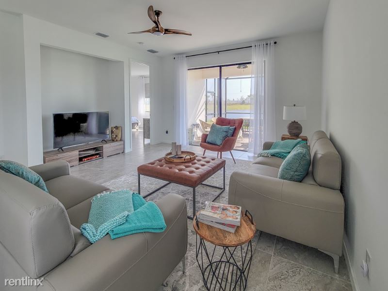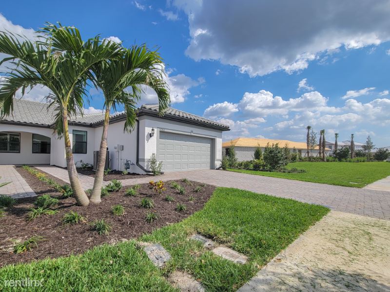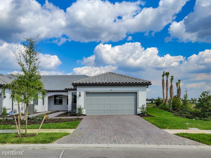 This one story 1600 sq/ft brand new attached villa has 2 bedrooms ,office and 2 full bathrooms. Spacious open floor plan with tile flooring, and 9ft. ceilings. Stunning water view from extended screened lanai. Two Car Garage includes new epoxy floor.